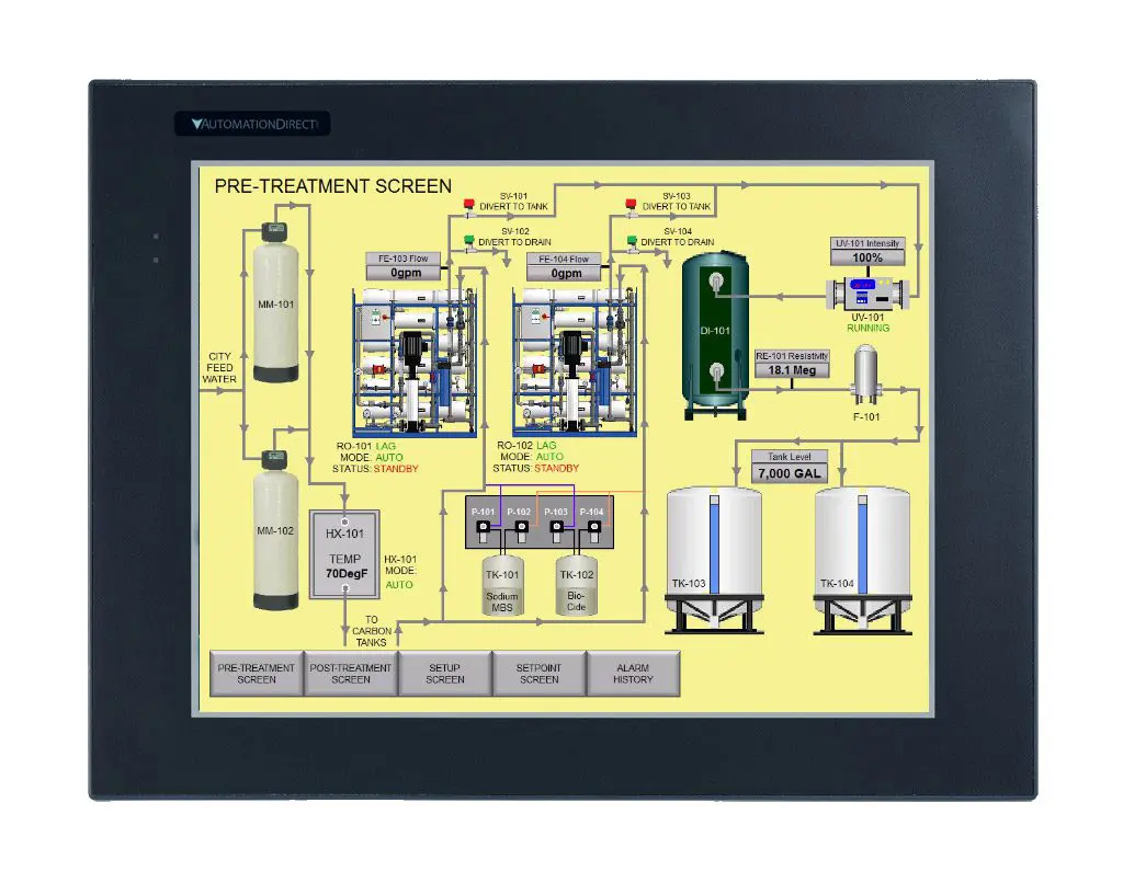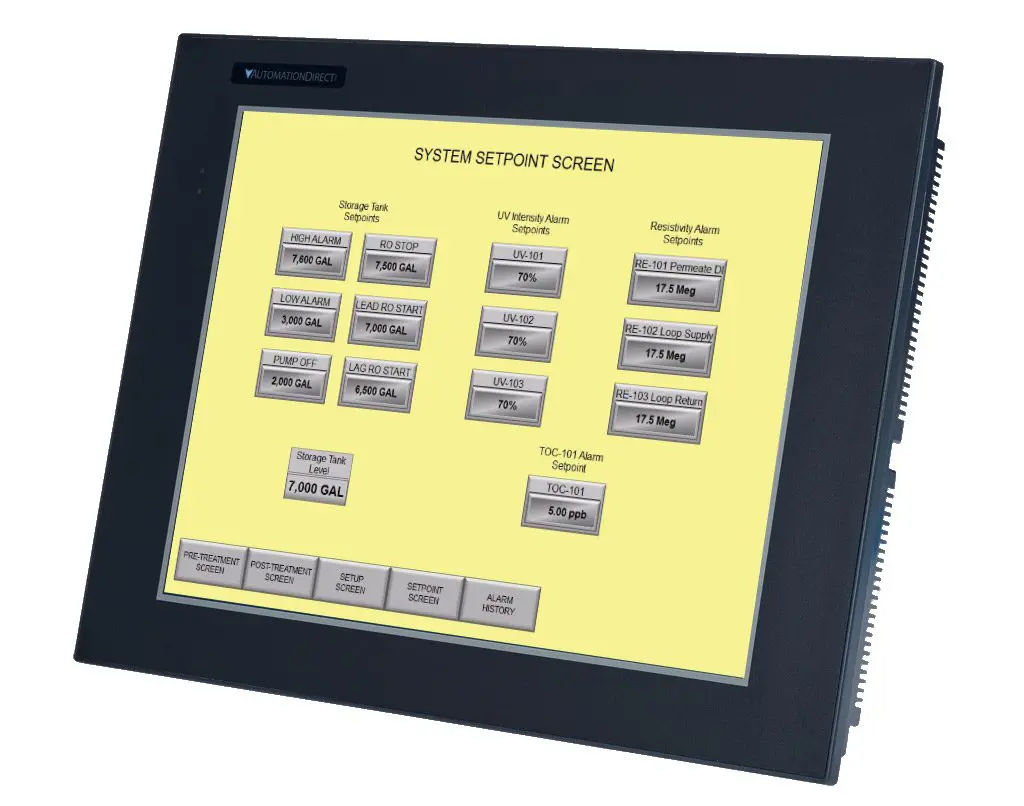 Whether you prefer manual control or a completely automated water treatment system, we can design a controls package that meets your needs. We utilize the latest PLC and HMI technology.